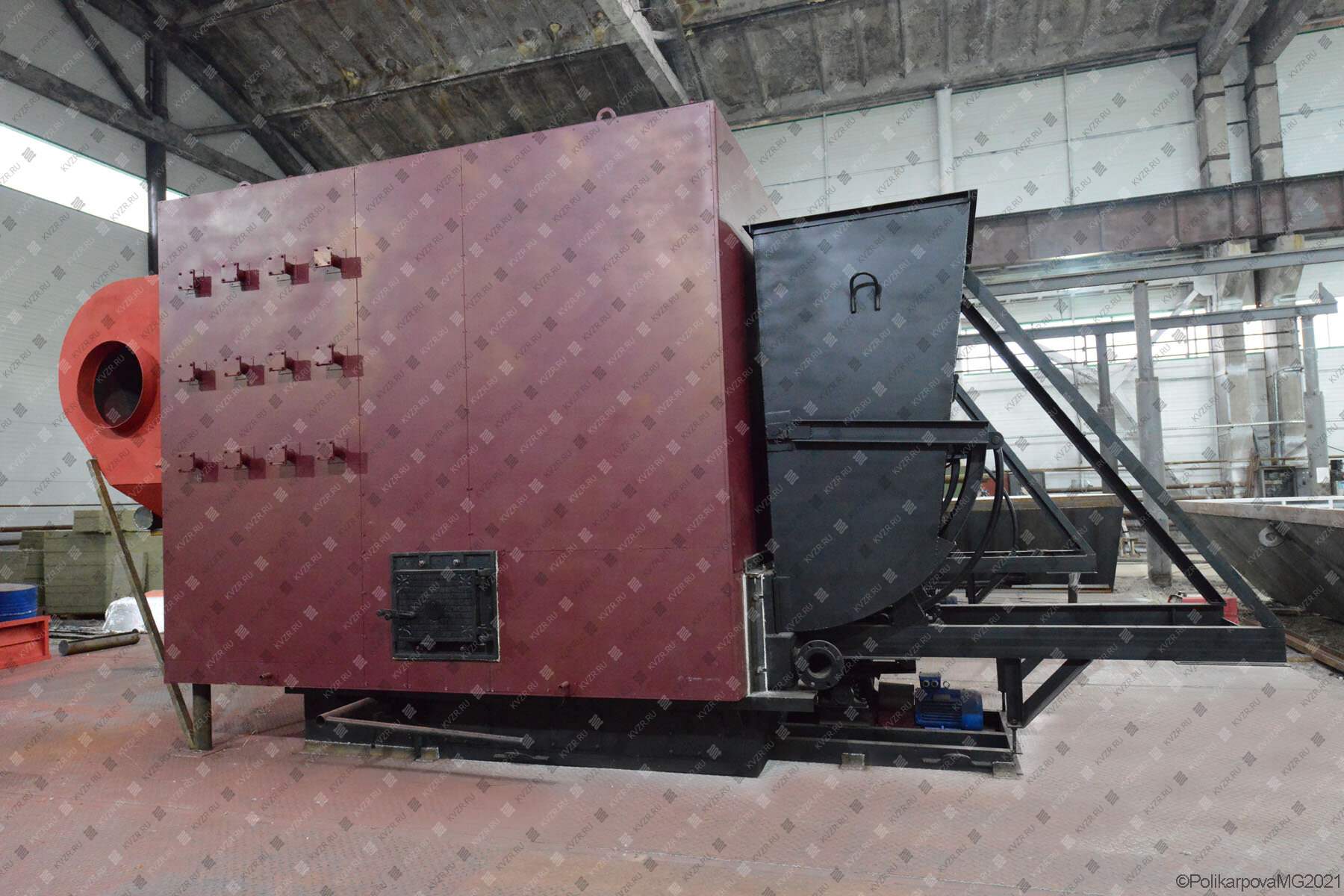 Стальные отопительные котлы промышленные с топкой ЗП РПК устанавливаются в котельных с механическими топливоподачей и шлакоудалением. На фронте установлена плита для крепления забрасывателя, на фронте и на боковой стенке установлены дверки для обслуживания топки и контроля процесса горения. Топливо по неподвижной колосниковой решетке разбрасывается с помощью вращающихся лопастей забрасывателя.