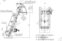 Транспортер СКИП 100 представляет собой устройство, собранное последовательно основание – опорной рамы предназначено для передачи нагрузки от веса подъемника и поднимаемого груза на опорную поверхность, направляющей – рамы с полозьями для движения в них ковша (скипа), скипа – ковша для загрузки в него и подъема в нем сыпучего материала, ограждений для ограничения доступа к движущимся элементам подъемника, привода – силового агрегата с тормозом осуществляющего перемещение ковша по направляющей с помощью канатной тяги, в крайних положениях ковша устанавливаются концевые выключатели для ограничения перемещения ковша и автоматизации приема крайних положений в ходе рабочего цикла.